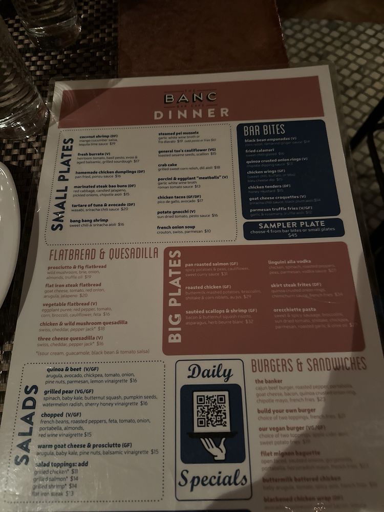 From delectable bar bites like truffle parmesan fries to standout dishes such as the chicken quesadilla and goat cheese wrap, satisfaction is assured. Banc Cafe also boasts excellent drink specials during happy hour, including half-price bottles of wine.
